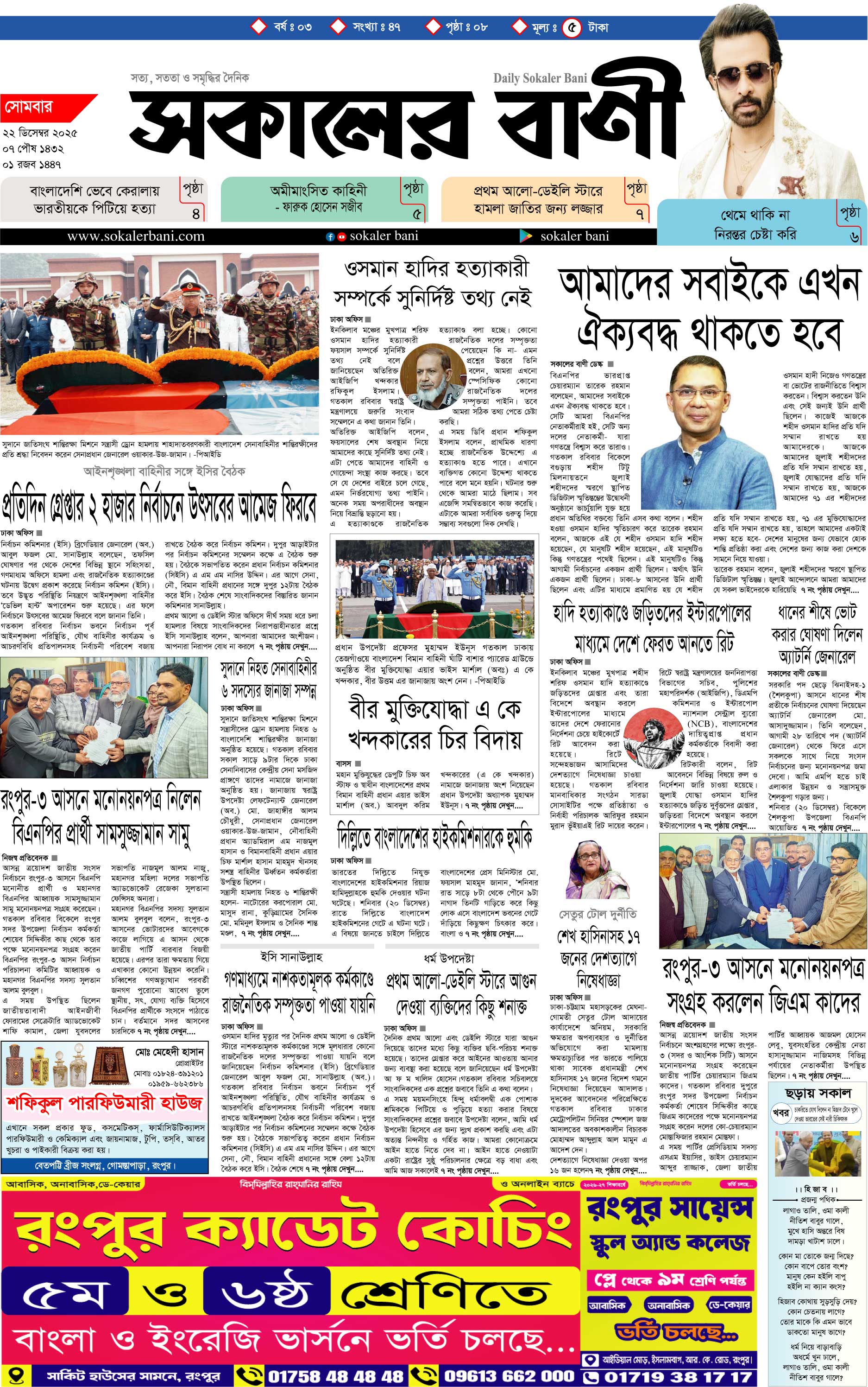 সোমবার, ২২ ডিসেম্বার ২০২৫, ৮ পৌষ ১৪৩২