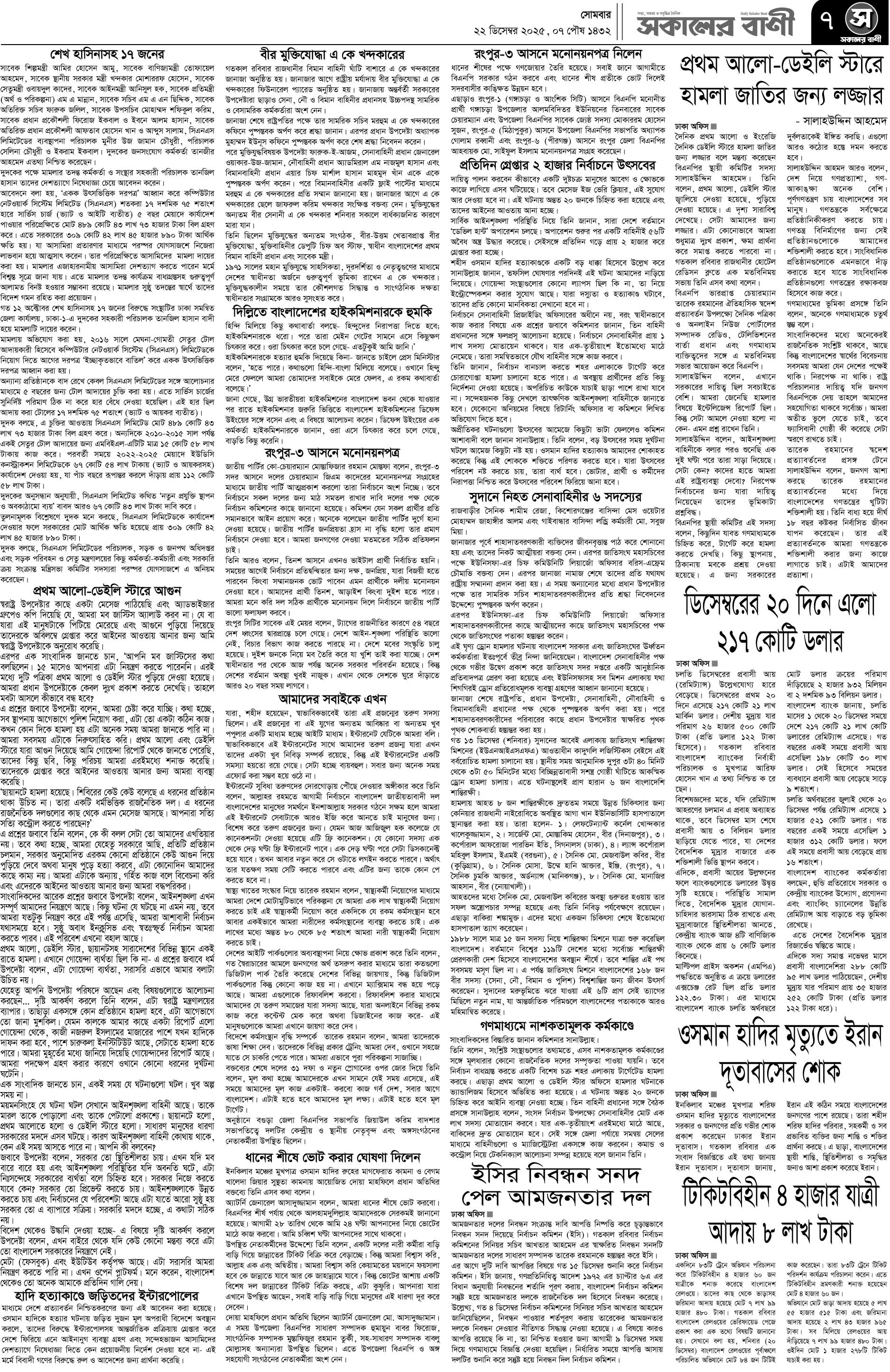 সকালের বাণী ই-পেপার