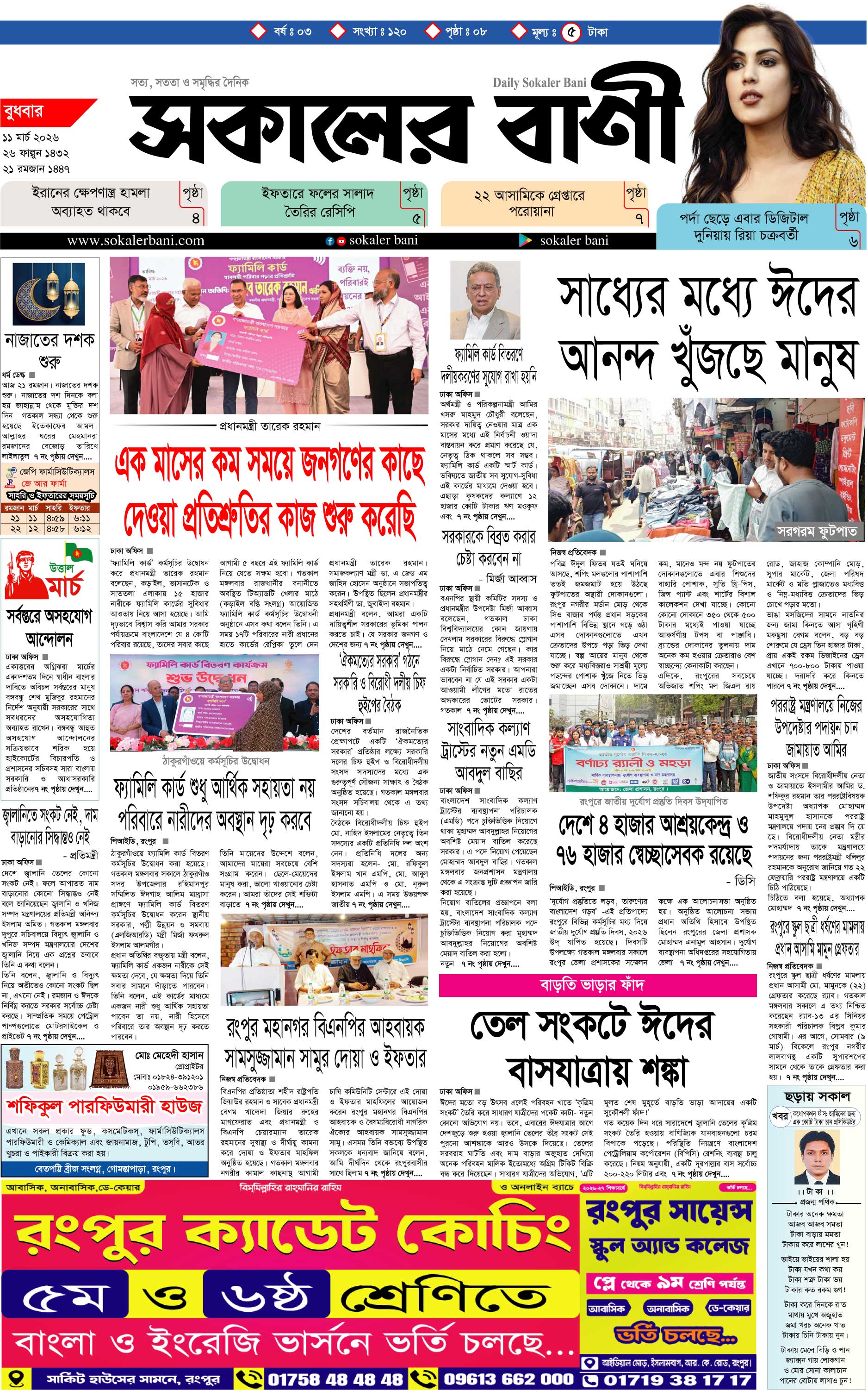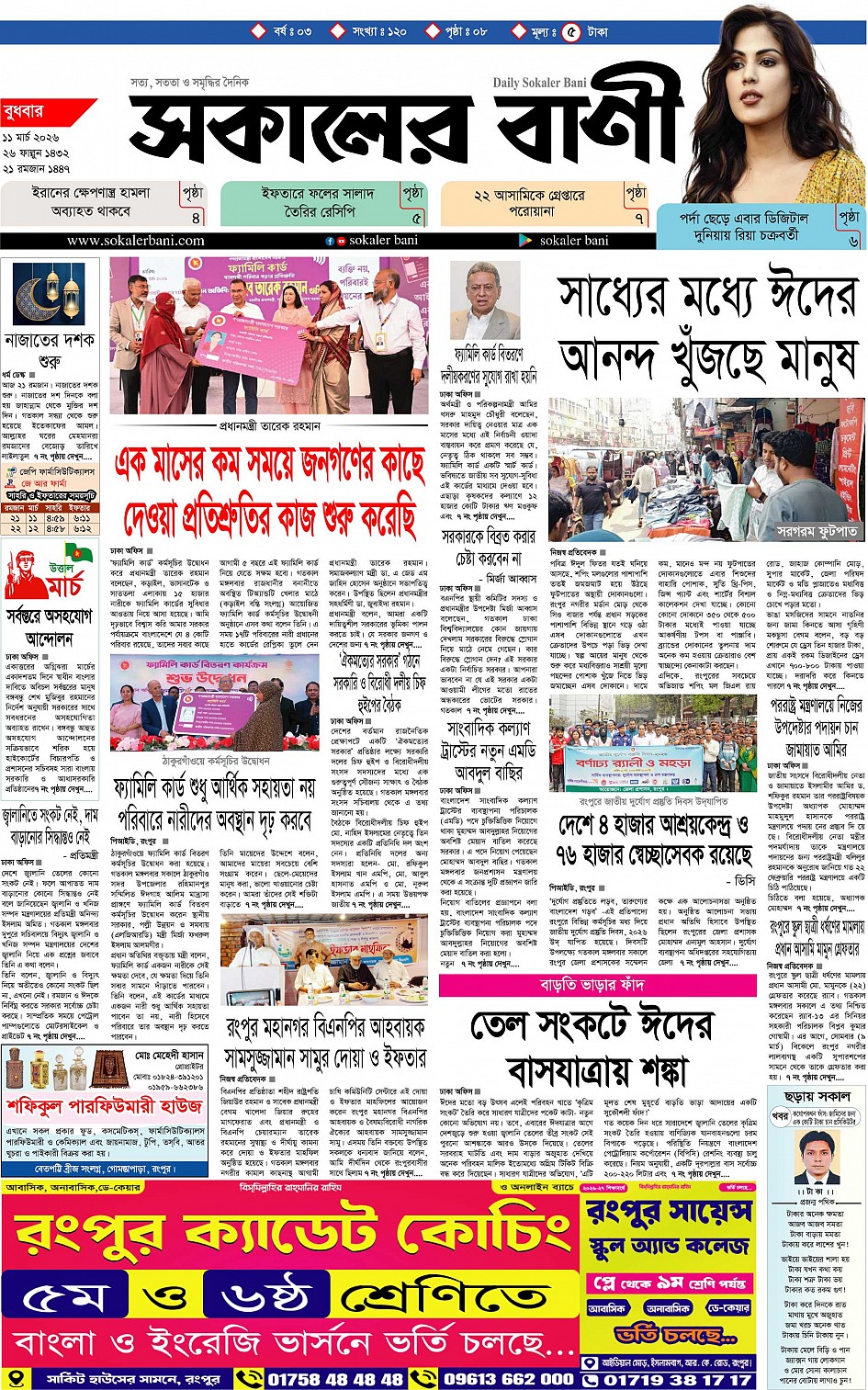 বুধবার, ১১ মার্চ ২০২৬, ২৭ ফাল্গুন ১৪৩২