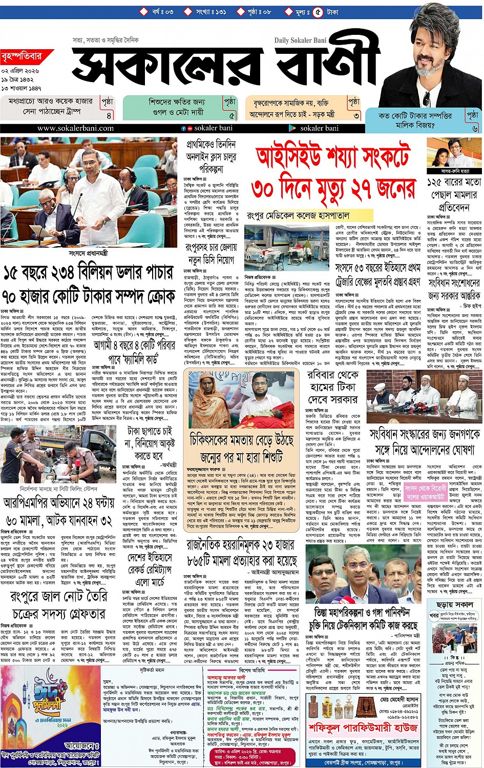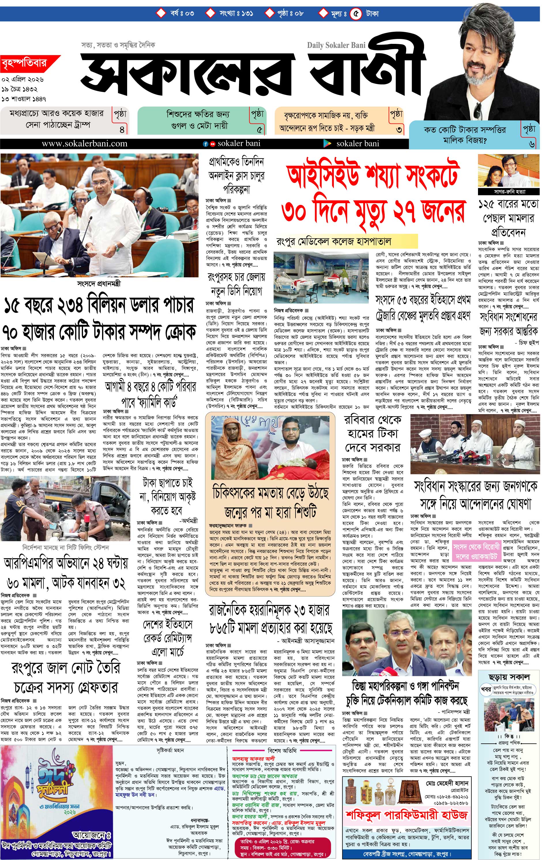বৃহস্পতিবার, ০২ এপ্রিল ২০২৬, ১৯ চৈত্র ১৪৩২