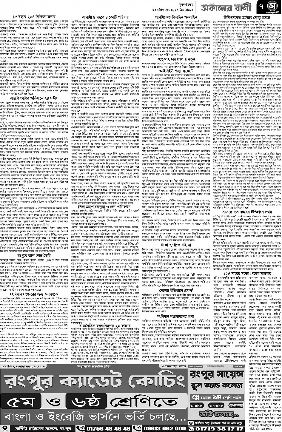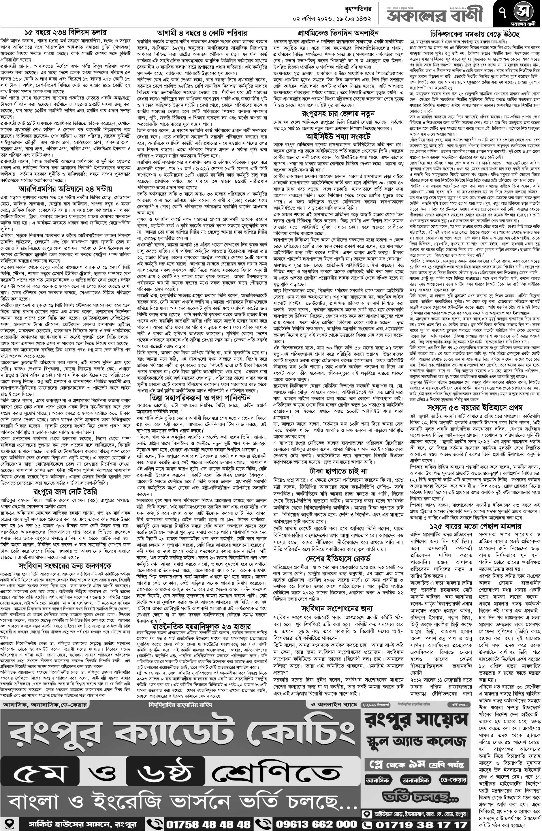 বৃহস্পতিবার, ০২ এপ্রিল ২০২৬, ১৯ চৈত্র ১৪৩২