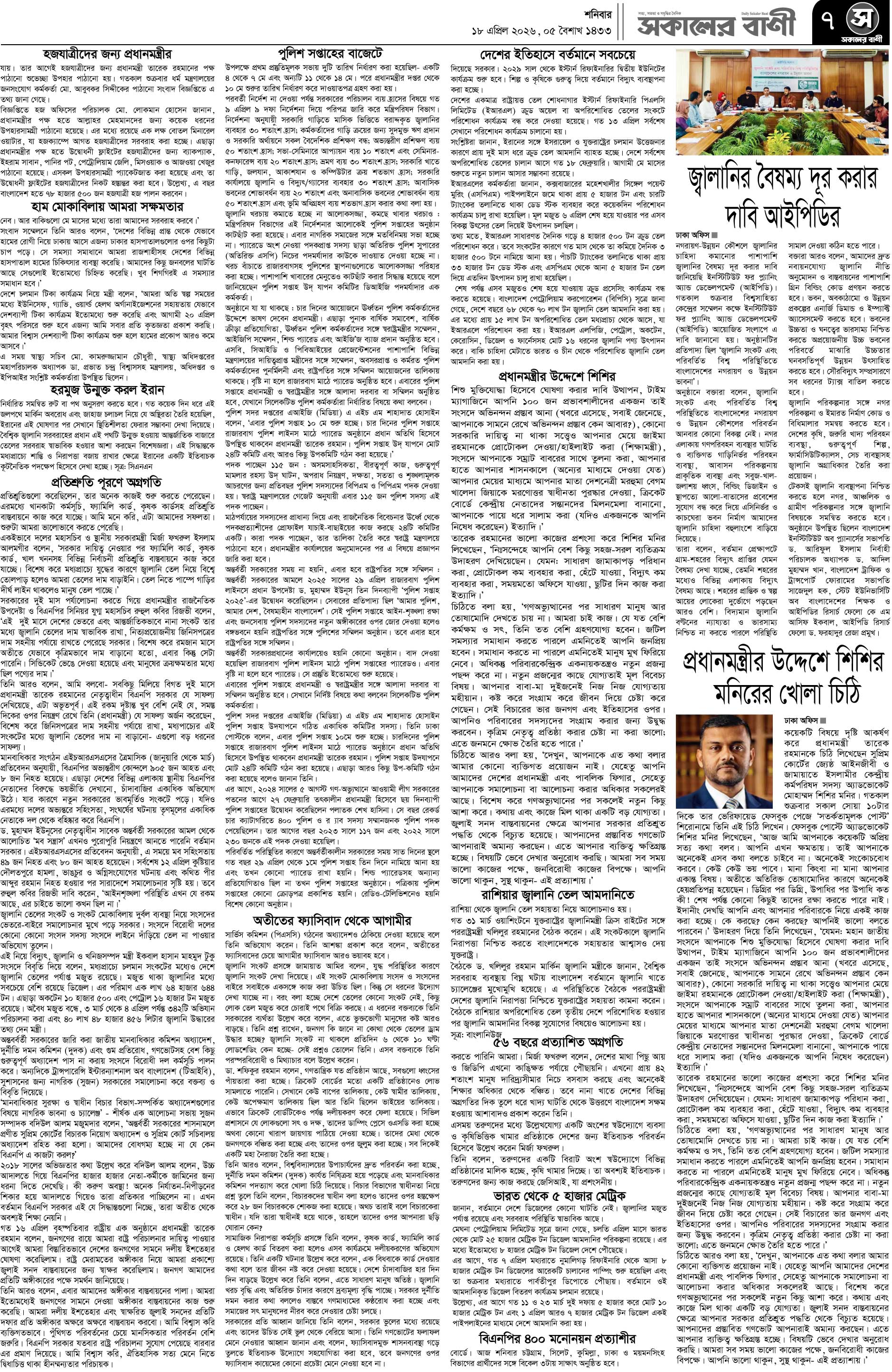 শনিবার, ১৮ এপ্রিল ২০২৬, ৫ বৈশাখ ১৪৩৩